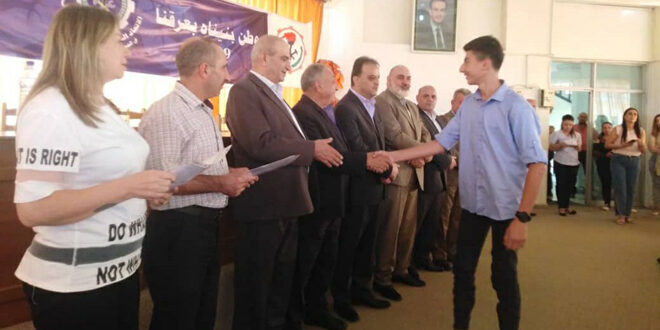 وقدم الطالب الأول على مستوى سورية بالفرع العلمي كنان الحمدان في كلمة المكرمين الشكر لكل من يساهم في التفوق ويدعم المتفوقين.