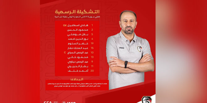 أعلن المدير الفني لمنتخب سورية للناشئين بكرة القدم فراس معسعس تشكيلة منتخبنا في مباراته اليوم مع نظيره السعودي في نهائي بطولة غرب آسيا على ملعب الأمير محمد بمدينة الزرقاء الأردنية.