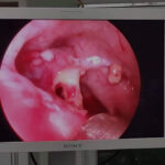 وبين الدكتور عمار أنه مع استمرار المضاعفات التي يعاني منها المريض بالرغم من اتخاذ الإجراءات العلاجية المطلوبة كان لا بد من متابعة تقييم الحالة من أطباء الشعبة الأذنية بالتعاون مع أطباء شعبة الجراحة العصبية، وتقرر إجراء العمل الجراحي للمريض.