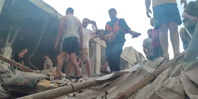 استشهد عشرة فلسطينيين وأصيب آخرون فجر اليوم، جراء قصف طيران الاحتلال الإسرائيلي مخيم النصيرات وسط قطاع غزة المنكوب.