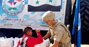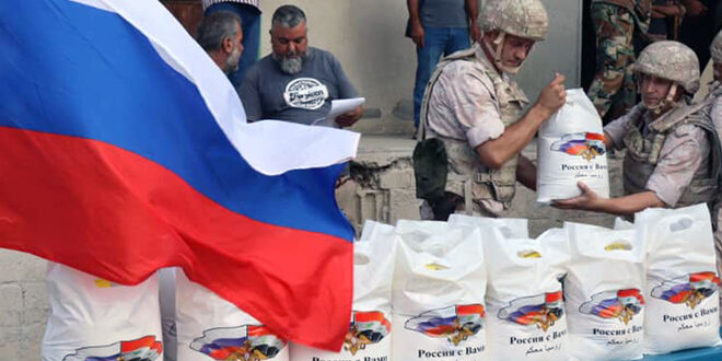 وزع مركز التنسيق الروسي في حميميم نحو ثلاثة أطنان من المساعدات الغذائية على أهالي قرية بيت العتيقة في ريف القرداحة باللاذقية.