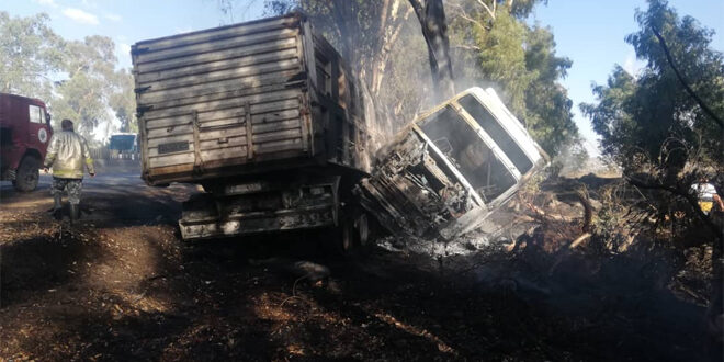 وذكر العميد مهذب المودي مدير الدفاع المدني بحمص لمراسلة سانا أن غرفة عمليات المديرية تلقت بلاغاً حول تدهور شاحنة قرب مفرق أم جامع بمنطقة سهل البقيعة على الطريق الدولي حمص طرطوس واندلاع النار فيها، وعلى الفور تحرك عناصر المديرية إلى المكان وعملوا بالتعاون مع فوج إطفاء وشرطة الطرق على تنظيم السير وتحويله وإخماد الحريق وإسعاف شخص مصاب، وآخر متوفى إلى مشفى تلكلخ الوطني، والعمل جار على إزالة آثار الحادث.