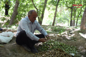 ليث عبد العظيم عمله متخصص بفرط الجوز ولديه القدرة على تسلق الأشجار العالية أوضح أن قطاف الجوز يحتاج إلى خبرة وخفة ورشاقة كون أشجار الجوز مرتفعة جداً، وتحتاج إلى عصا طويلة ومرنة للوصول إلى الثمرة مباشرة دون إيذاء الأغصان، مبيناً أن وداي حلبون مقسم إلى سبعة أقسام رئيسية هي عين الصاحب والجبيلي والحقل الحمراء وعين بلارة وصوت الوادي ورأس الوادي والفاخوخ، ويوجد نوعان للجوز، صيفي وموسمي، منه السقي والبعل.