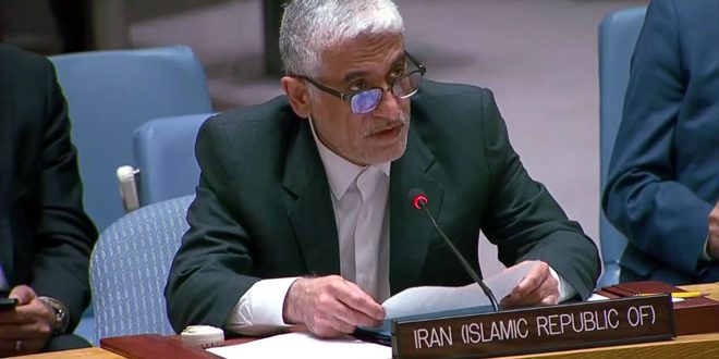 جدد مندوب إيران الدائم لدى الأمم المتحدة أمير سعيد إيرواني موقف بلاده الداعي إلى إلغاء العقوبات الأحادية المفروضة على سورية واحترام سيادتها وإنهاء الوجود غير القانوني للقوات الأجنبية على أراضيها.