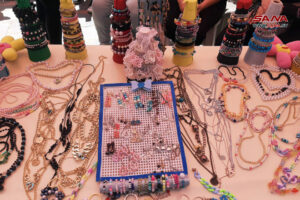 ومن المشاركات بالبازار أشارت صفاء الحسن إلى تقديمها تشكيلة من منتجات المونة المنزلية بهدف توسيع نطاق التسويق لما تنتجه، بينما لفتت والدة الشابة ريم مقلد إلى مشاركة ابنتها وهي من ذوي الإعاقة بتشكيلة من الإكسسوارات، مؤكدة أن البازار فرصة لدعمها وتشجيعها ودمجها بالمجتمع، وهذا ينطبق على الشاب سامح الشحف الذي أبدى سعادته بتقديم مجسمات خشبية مع رسومات بما يعكس موهبته.