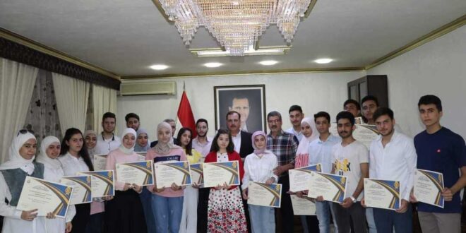 كرمت محافظة ريف دمشق اليوم الطلاب الحاصلين على العلامة التامة في شهادتي التعليم الأساسي والثانوية العامة الفرع العلمي، والحائزة المرتبة الأولى في الفرع الأدبي.