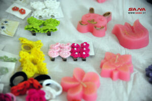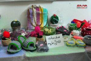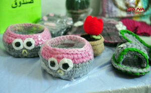 مشغولات يدوية متنوعة من الكروشيه ومنتجات إعادة التدوير، ضمها معرض نظمته جمعية خطوة للإرشاد الأسري لعدد من السيدات خضعن لدورة تدريب مهني وحرف يدوية، وذلك في مقر الجمعية بجرمانا في ريف دمشق.