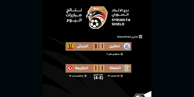 وفي اللقاء الذي جرى على ملعب الجلاء بدمشق فاز الشعلة على الطليعة بركلات الترجيح 4-5 بعد تعادل الفريقين في الوقت الأصلي بهدف لمثله.
