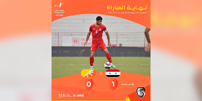 فاز منتخب سورية لكرة القدم للشباب على منتخب بوتان بهدف مقابل لا شيء اليوم، في الجولة الثانية من التصفيات الآسيوية المقامة على ملعب لاش تراي في مدينة هايفونغ الفيتنامية.