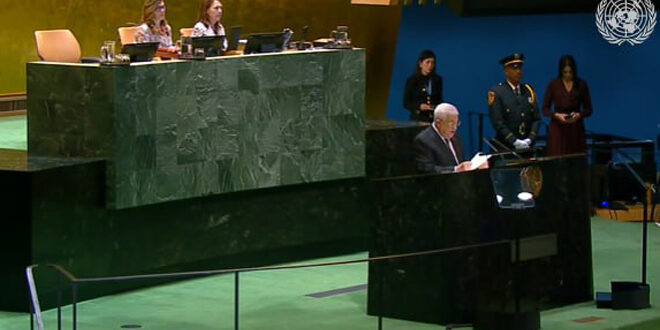 أكد الرئيس الفلسطيني محمود عباس ضرورة وقف عدوان الاحتلال الإسرائيلي المتواصل على قطاع غزة والضفة الغربية بما فيها القدس، مطالباً بتجميد عضوية “إسرائيل” في الأمم المتحدة بسبب رفضها تنفيذ القرارات الأممية الخاصة بفلسطين.