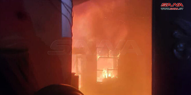 وبين قائد فوج إطفاء دمشق العميد داؤد عميري لمراسلة سانا أن حريقا نشب ضمن منزل عربي مؤلف من طابقين وغرفة ملحق في دخلة الحبالة بحي السويقة، ما تسبب بوفاة شخصين وأضرار مادية بالمكان.