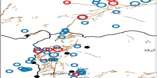 وأوضح المركز في بيان تلقت سانا نسخة منه اليوم أن إحدى الهزات حصلت في تمام الساعة الـ 9 و 16 دقيقة من صباح أمس في جنوب شرق حماة بـ 17 كم وبقدر 2.1 درجة على مقياس ريختر، في حين حصلت هزتان بقدر 3 درجات إحداهما شمال غرب إدلب بـ 28 كم، والثانية وسط تركيا.