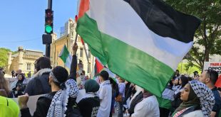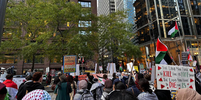 تظاهر المئات من النشطاء والمناصرين للحقوق الفلسطينية أمام قنصلية كيان الاحتلال الإسرائيلي بمدينة شيكاغو بولاية إلينوي في الولايات المتحدة، رفضاً للعدوان الإسرائيلي الهمجي على فلسطين ولبنان.