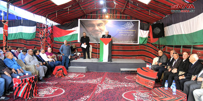 بدوره أشار الأمين العام للجبهة الديمقراطية لتحرير فلسطين فهد سليمان إلى أن دماء الشهيد نصرالله شعلة لن تنطفئ ونحن في زمن التقدم على طريق التحرير بفضل رجال المقاومة في جميع الساحات.