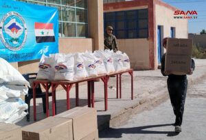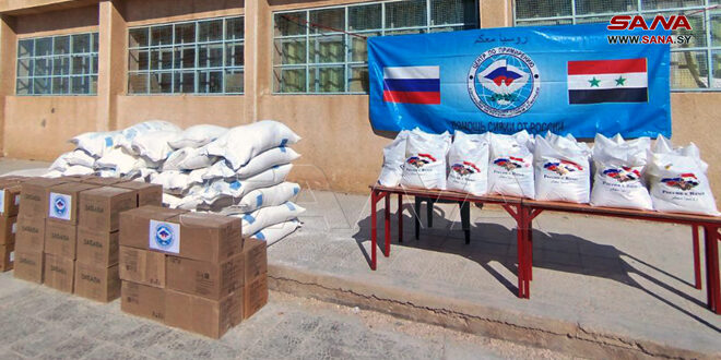 وزع مركز التنسيق الروسي في سورية مساعدات إنسانية على أهالي قرية زمرين بريف درعا.
