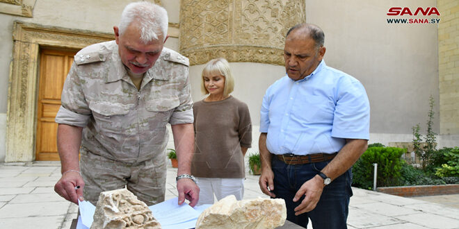 سلم مركز التنسيق الروسي في دمشق اليوم المديرية العامة للآثار والمتاحف ثلاث قطع أثرية تعود للقرنين الأول والثاني قبل الميلاد، عثر عليها في مدينة تدمر الأثرية.