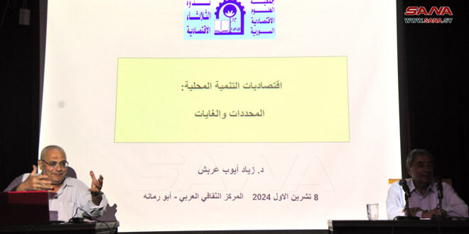 وقدم الدكتور زياد عربش أستاذ الاقتصاد في جامعة دمشق خلال الندوة رؤيته لاقتصادات التنمية المحلية في سورية بمحدداتها وغاياتها، بحيث يأخذ المجتمع المحلي في منطقة جغرافية معينة دوره بتنمية منطقته من خلال بيئة قانونية وتشريعية وتنظيمية مرنة تضمن تعزيز سبل العيش والاستقرار والتماسك والتآزر الاجتماعي، ورفع مستوى النشاط الاقتصادي والتشغيلي.