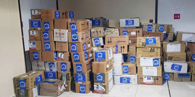 تسلمت اللجنة العليا للإغاثة اليوم شحنة مساعدات إنسانية مقدمة من الجمهورية الباكستانية إلى الحكومة والشعب السوري، تحتوي 3.5 أطنان من المواد الطبية.