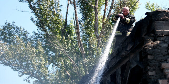 وأضاف: إن “الهجوم لم يؤد إلى وقوع ضحايا أو إصابات، فيما تواصل فرق الإطفاء إخماد حرائق اندلعت في البلدة جراء الهجوم”.