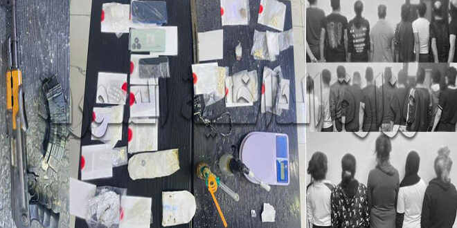 وأوضحت وزارة الداخلية على صفحتها في الفيسبوك أنه ومن خلال المتابعة والبحث تمكنت دوريات شرطة ناحية جرمانا وخلال 48 ساعة من إلقاء القبض على 23 شخصاً من مروجي ومتعاطي المواد المخدرة، بينهم فتيات، ثمانية منهم كانوا داخل إحدى المزارع أثناء تعاطيهم المواد المخدرة وبحوزتهم بندقية حربية مع مذخراتها، وكمية من الحشيش المخدر وحبوب “كبتاغون” ومادة “الكرستال” الخطرة وميزان إلكتروني لوزن المواد، وأسلحة بيضاء.