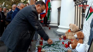 وفي تصريح لمراسل سانا في موسكو قال رئيس منظمة التعاون بين الإسلام والمسيحية في روسيا الاتحادية إيميل عاشوروف “اجتمعنا اليوم لنعرب عن تضامننا مع نضال الشعب الفلسطيني وشعبي سورية ولبنان امام هذه الهجمة الصهيونية العدوانية المتواصلة” مؤكداً أن ممارسات الكيان الصهيوني اليوم على الأرض الفلسطينية ليست حرباً إنما هي مذبحة حقيقية ضد الشعب الفلسطيني وإبادة بالكامل لإزالة الوجود الفلسطيني واللبناني من الذاكرة التاريخية.