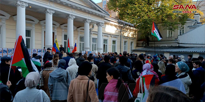 وأكدت حشود المشاركين من الروس والجاليات العربية والأجنبية التي توافدت اليوم إلى مقر السفارة الفلسطينية بموسكو تضامنها مع نضال الشعبين الفلسطيني واللبناني وضرورة فضح نهج الغطرسة الإسرائيلية وسياسة الفصل العنصري التي ينتهجها الكيان الصهيوني في منطقة الشرق الأوسط بتأييد ودعم من الولايات المتحدة والامبريالية العالمية.