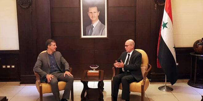بحث وزير الإدارة المحلية والبيئة “رئيس اللجنة العليا للإغاثة” المهندس لؤي خريطة مع السفير الفنزويلي لدى سورية خوسيه غريغوريو بيومورجي موساتيس والوفد المرافق سبل التعاون المشترك وآليات توزيع المساعدات الإغاثية الإنسانية الفنزويلية (الطبية والغذائية) المقدمة لسورية لدعم جهودها في الاستجابة للوافدين من لبنان الشقيق.