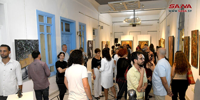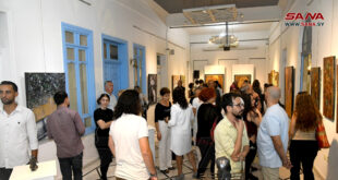 المعرض الذي احتضنته صالة “زوايا” بدمشق ويعود ريعه لدعم الوافدين السوريين واللبنانيين ضم 31 عملاً فنياً 23 منها لوحات تشكيلية و8 منحوتات معدنية متنوعة تحاكي أحداث الـ 7 من تشرين الأول في فلسطين المحتلة وحملت عناوين عدة مثل الطفولة والأرض والكوفية الفلسطينية.