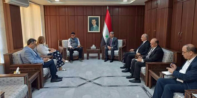 بحث وزير الموارد المائية المهندس معتز قطان مع الممثل المقيم لبرنامج الأمم المتحدة الإنمائي في سورية سوديبتو موكرجي والوفد المرافق آفاق التعاون بين الجانبين.
