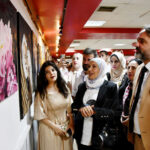 وقدمت الفنانة التشكيلية الشابة ميار الخضور لوحة زيتية أظهرت فيها جمال الانثى وصفاتها من نقاء وفكر حر وذوق.