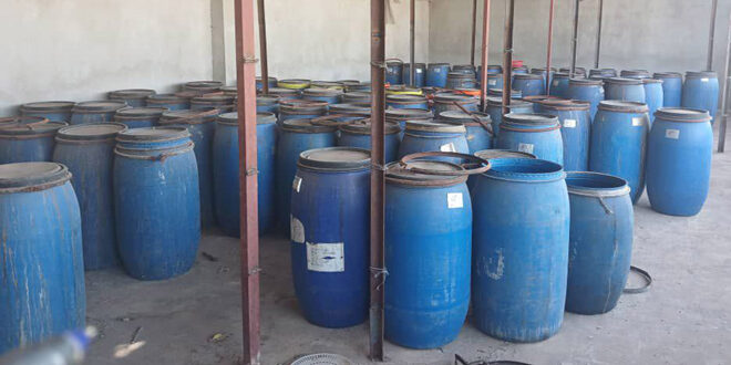 ضبط عناصر مديرية التجارة الداخلية وحماية المستهلك 20 طناً من المواد الغذائية غير الصالحة للاستهلاك البشري في معمل كونسروة ومخللات في منطقة صحنايا.