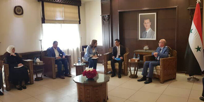 وناقش الجانبان خلال اللقاء الذي جرى في الوزارة سير العمل المشترك وفق خطة عمل المنظمة المتفق عليها وسبل تطوير التعاون بين الجانبين.