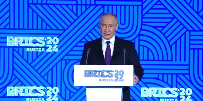 أكد الرئيس الروسي فلاديمير بوتين أن دول مجموعة بريكس تلعب دوراً ملحوظاً في الاقتصاد العالمي وهو دور سيزداد في المستقبل، مشيراً إلى أن النمو الاقتصادي للمجموعة سيقل ارتباطه بالمؤثرات الخارجية بفضل السيادة والشراكة التي تعزز من إمكانياتها.