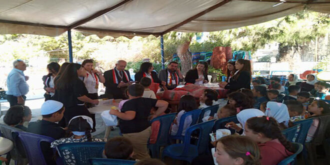 وتضمنت الفعالية المقامة بالتعاون مع المجتمع الأهلي توزيع ألبسة وهدايا لنحو مئة طفل وتنظيم ألعاب ترفيهية وتعليمية لهم.