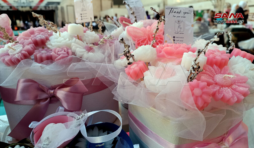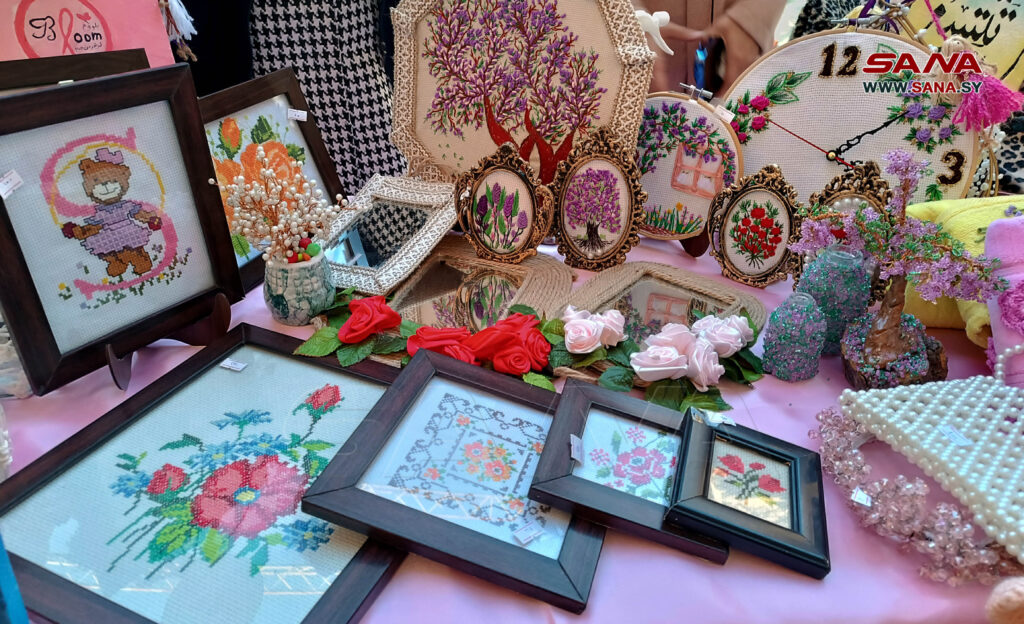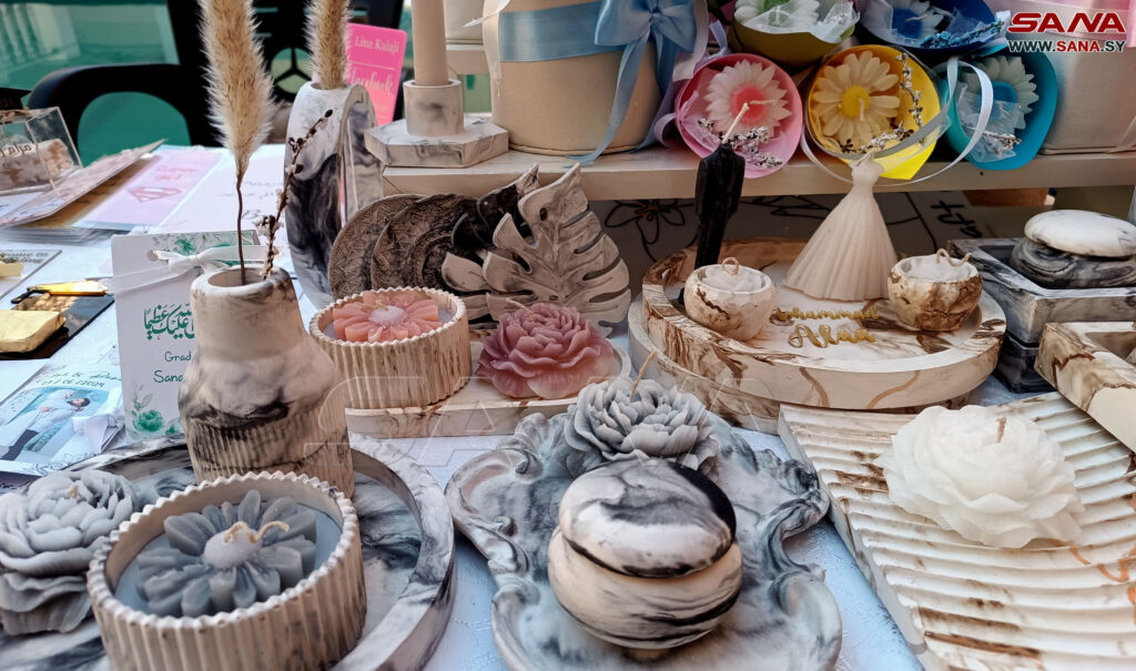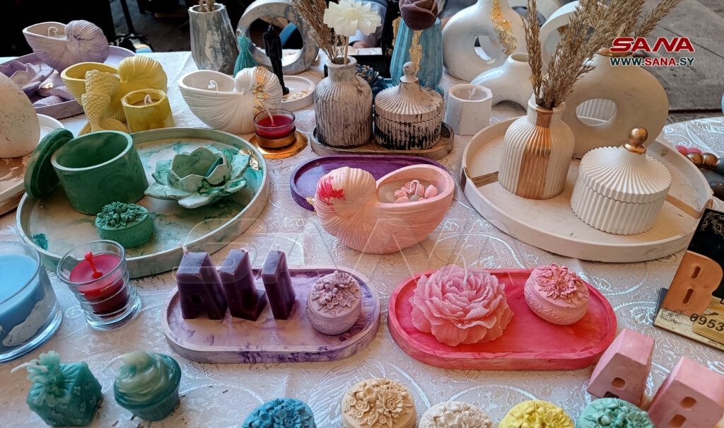 وقالت رانيا جدوع من جمعية مرضى مكافحة السرطان بحلب إن الجمعية تعرض منتجات ثماني سيدات وتشمل أعمالاً يدوية من المشغولات الصوفية والايتامين وأدوات الزينة والشموع والفخار منوهة بأهمية تقديم الدعم للمشاركات وتشجيعهن على تجاوز المرض ومواصلة الإنتاج .