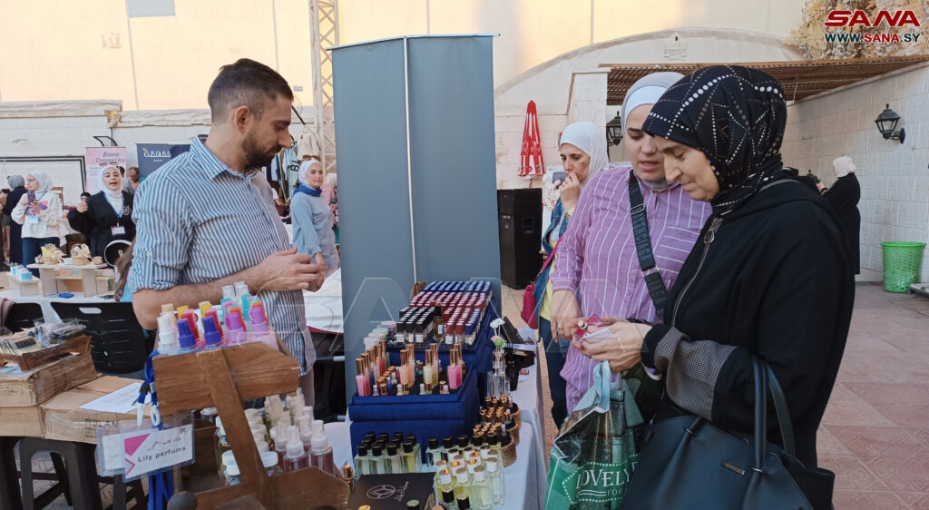 بمشاركة 120 سيدة من اصحاب المشاريع الصغيرة افتتحت فعاليات معرض بازار “حلب أحلى” الذي تنظمه مؤسسة الكنانة للمعارض والمؤتمرات بالتعاون مع غرفة صناعة حلب في نادي الاتحاد ويضم نتاج المشاركات من أعمال يدوية وملبوسات ومشغولات صوفية وايتامين وإكسسوارات الزينة وHنواع الطعام والحلويات.