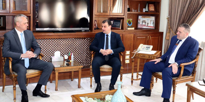 بحث وزير الزراعة والإصلاح الزراعي الدكتور فايز المقداد اليوم مع السفير المفوض وفوق العادة لجمهورية بيلاروس بدمشق يوري سلوكا والوفد المرافق علاقات التعاون بين البلدين في المجال الزراعي وسبل تطويرها.