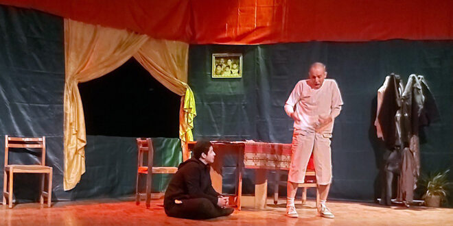 وحاول العرض الذي استمر قرابة الساعة أن يعكس فكرة الحياة والموت وصراع المرض مع الموت حسب النص المسقط للعربية بسينوغرافيا وديكور اخذ من أكثر من مدرسة ومن خلال الممثِّلين فارس الحلبي بدور “نات أكرمن” وفوزي الهادي بدور “الموت” .