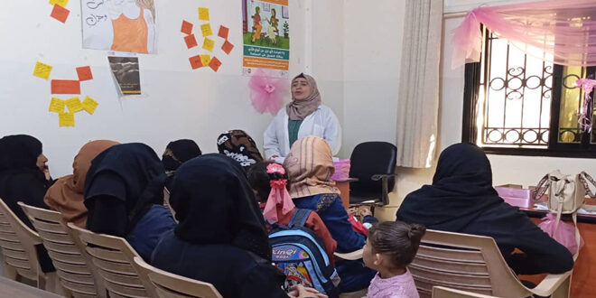 ضمن أنشطة “الشهر الوردي” للتوعية بأهمية الكشف المبكر عن سرطان الثدي قدم فرع جمعية تنظيم الأسرة السورية بدرعا فحوصات مجانية وجلسات مشورة وتوعية للنساء حول المرض في مناطق عدة بالمحافظة.