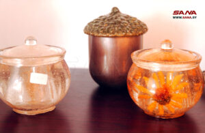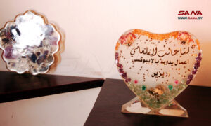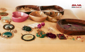 تطوع الشابة رشا القلعاني مادة “الريزين” لتكوين تحف ومجسمات فنية وإكسسوارات متعددة ضمن مشروعها المنزلي متناهي الصغر في بلدة الكفر بريف محافظة السويداء الجنوبي.
