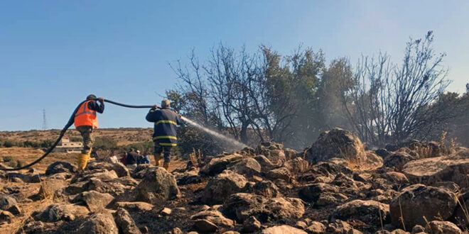 وذكر قائد فوج الإطفاء بالسويداء فادي الداوود في تصريح لمراسل سانا أنه فور الإبلاغ عن الحريق توجهت آليات من الفوج ومديريتي الدفاع المدني والزراعة إلى مكان الحريق الذي نشب في مساحة واسعة من الأعشاب من ضمنها أشجار مثمرة من التفاح والعنب والتين وبعض أشجار السنديان، وتمت السيطرة عليه والقيام بعمليات التبريد اللازمة.