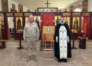 بدوره أقام ممثل بطريرك موسكو وسائر روسيا لدى بطريرك أنطاكية وسائر المشرق الأرشمندريت فيليب فاسيلتسيف قداساً، وأعرب عن شكره لممثلي القوات الروسية على ما يقدمونه للشعب السوري.