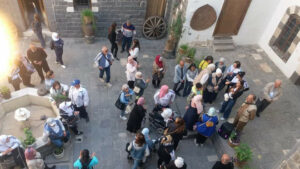 الجولة التي تمت بالتعاون مع مشروع ” نور ايميسا” وبمشاركة لأعضاء نادي السلام الرياضي وجمعية الرجاء شملت “جامع النوري الكبير – الأسواق الأثرية – مقام أبو الهول – مسجد الخضر – قصر الزهراوي – كنيسة أم الزنار – كنيسة الأربعين – دير الآباء اليسوعيين ” حيث تعرف الزوار على الأسواق الأثرية القديمة وتاريخ الكنائس وقصر الزهراوي وفن العمارة القديم وتطوره عبر العصور.