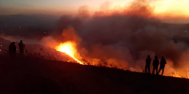 تواصل كوادر إطفاء حمص بالتعاون مع الأهالي جهودها للسيطرة على الحريق الواسع الذي اندلع مساء اليوم بالأراضي الزراعية لقرية بحور والذي توسع باتجاه أراضي قرى المزينة وعين الغارة وبلاط.