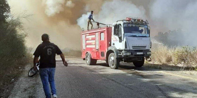 تبذل فرق الإطفاء في حمص بالتعاون مع حوامات الجيش العربي السوري جهوداً للسيطرة على حريق اندلع بأراضي بلدة حب نمرة في ريف المحافظة الغربي.