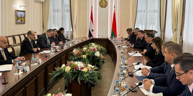 وكان وزير الخارجية والمغتربين قد بحث مع ديميتري بانتوس رئيس الجانب البيلاروسي في اللجنة الحكومية المشتركة السورية البيلاروسية التعاون الثنائي بين البلدين، واستعرضا التحضيرات الجارية لعقد الدورة التاسعة للجنة الحكومية المشتركة في دمشق في الربع الأول من العام القادم.