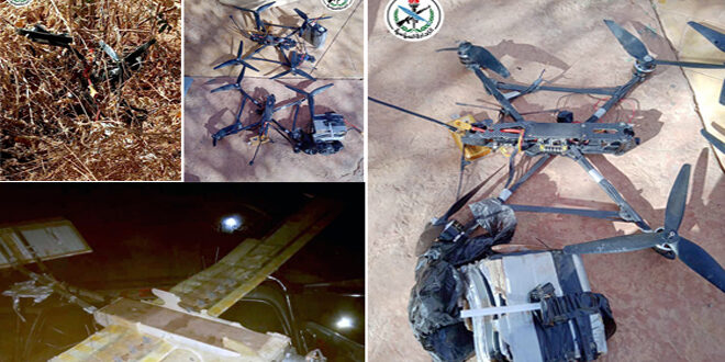 دمرت وحدات من الجيش العربي السوري عدة طائرات مسيرة أطلقتها التنظيمات الإرهابية المنتشرة بريفي حلب وإدلب للاعتداء على النقاط العسكرية والمناطق الآمنة.