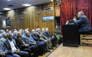 وقدم الدكتور خلف المفتاح مدير عام مؤسسة القدس الدولية –سورية عرضاً للمشهد السياسي، متحدثاً عن واقع الأمة العربية في ظل تداعيات معركة طوفان الأقصى وحرب الإبادة التي يشنها جيش الاحتلال الإسرائيلي على غزة ولبنان، والاستهداف المباشر لمحور المقاومة.