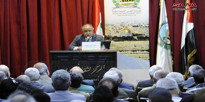 نظمت مؤسسة القدس الدولية سورية، واللجنة الشعبية العربية السورية لدعم الشعب الفلسطيني اليوم ندوة حملت عنوان فلسطين محور المقاومة، وذلك في المركز الثقافي العربي في أبو رمانة.