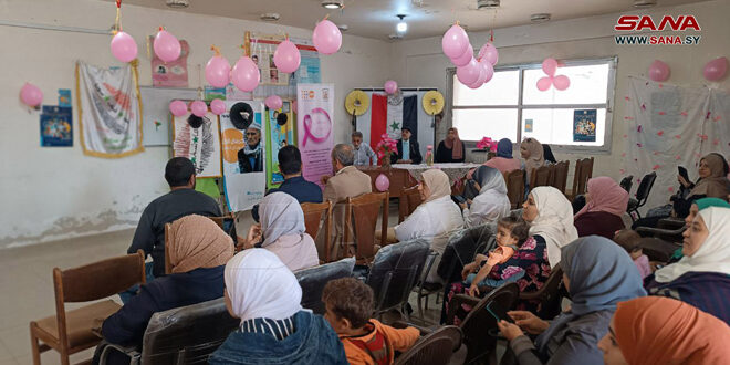 ضمن الحملة الوطنية للتوعية بأهمية الكشف المبكر عن سرطان الثدي “الشهر الوردي” نظم مركز بصرى الشام الصحي في درعا بالتعاون مع مديريتي الصحة والتربية فيها ورشة عمل حول الكشف المبكر عن المرض.